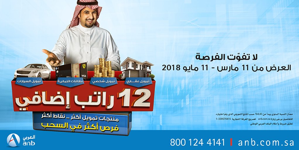 البنك العربي الوطني On Twitter ادخل السحب لربح 12 راتب إضافي مع منتجاتنا التمويلية Https T Co Hrkws6mixo